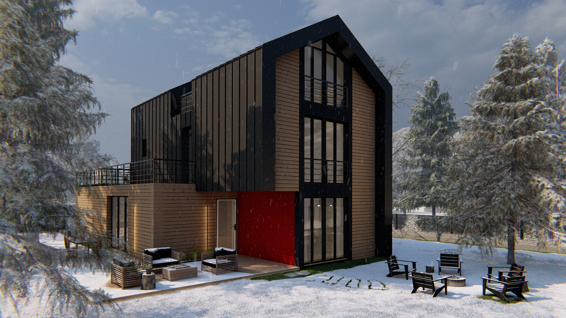 The load-bearing structure is made of a wooden frame, while the interior components are constructed with prefabricated elements, in accordance with French construction standards and the RT 2012 regulations. Depending on their orientation, the façades are treated with different materials.
