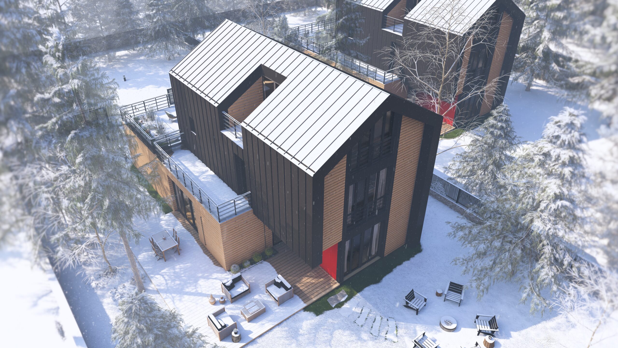 The development consists of two individual houses, identical in architecture. Integrating the buildings into the local context, by respecting the area’s traditional architecture and reinterpreting it in a contemporary form using modern materials, has been a key aspect of the design approach.